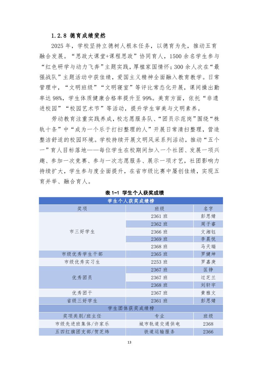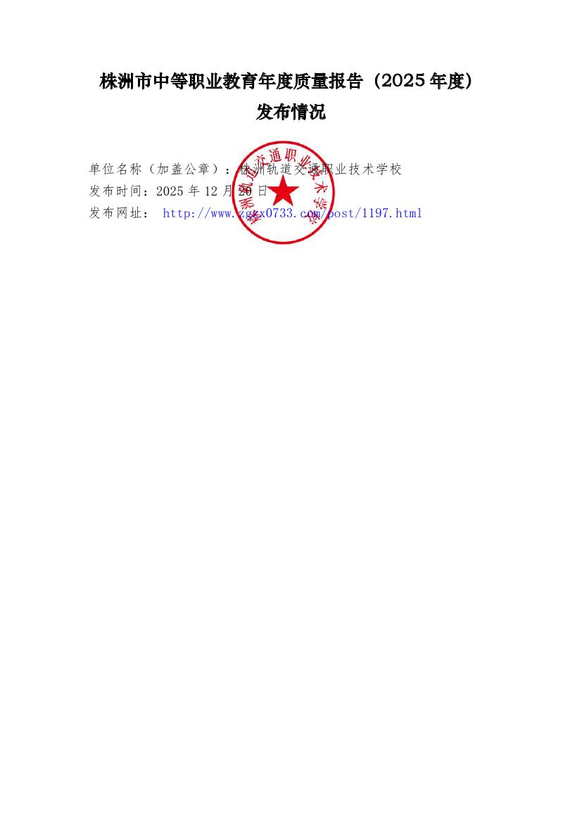 株洲軌道交通職業技術學校2025年度教育質量報告