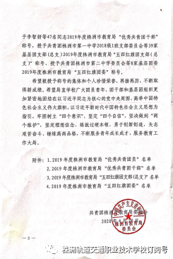 2020年“五·四”青年節(jié)期間,株洲職校(m.ccztjzjg.com)株軌學(xué)子榮獲共青團(tuán)株洲市教育局委員會(huì)五四表彰。